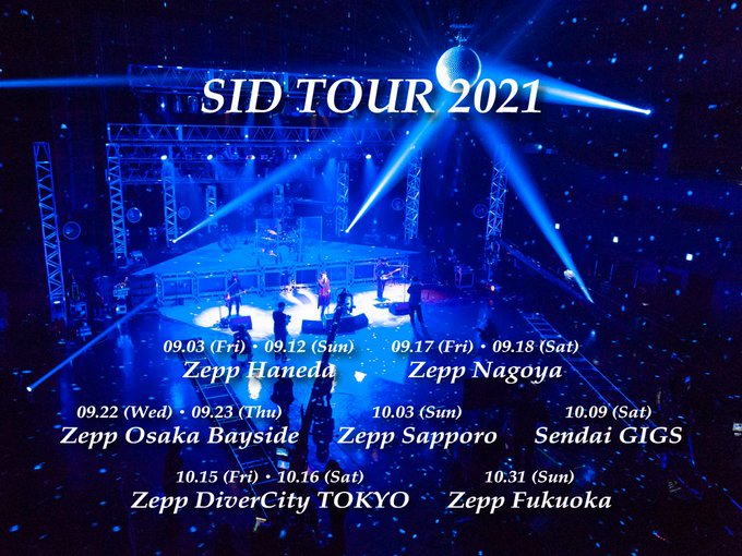 1) SID TOUR 2021 Taking place between Sept to Oct 2021年9月3日(金)東京都 Zepp Haneda(TOKYO) 2021年9月12日(日)東京都 Zepp Haneda(TOKYO) 2021年9月17日(金)愛知県 Zepp Nagoya 2021年9月18日(土)愛知県 Zepp Nagoya 2021年9月22日(水)大阪府 Zepp Osaka Bayside 2021年9月23日(木・祝)大阪府Zepp Osaka Bayside 2021年10月3日(日)北海道 Zepp Sapporo 2021年10月9日(土)宮城県 SENDAI GIGS 2021年10月15日(金)東京都 Zepp DiverCity(TOKYO) 2021年10月16日(土)東京都 Zepp DiverCity(TOKYO) 2021年10月31日(日)福岡県 Zepp Fukuoka 2) New song - Jiu no Kuchizuke Chosen as the opening theme song for the China Chinese anime Heaven Official's Blessing TOKYO MX and BS11 will began broadcasting the Japanese dubbed version of Heaven Official's Blessing from July onwards No word for now when Jiu no Kuchizuke will be released as SID's next single https://natalie.mu/music/news/428410 https://twitter.com/sid_staff/status...83932400173056 https://twitter.com/tgcf_anime/statu...83931209052160