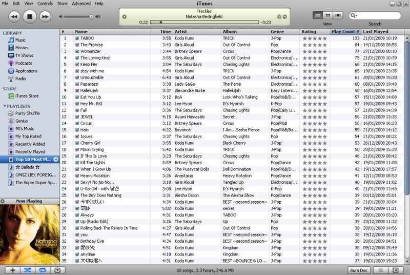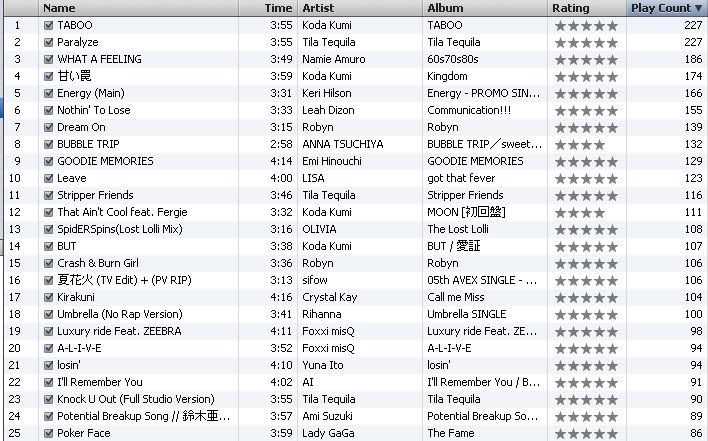 ![]() lol@my TABOO play count (no, I actually don't like Life, talkin' 2 myself, Days, etc. that much so I'm not sure how the ended up so high xD) |