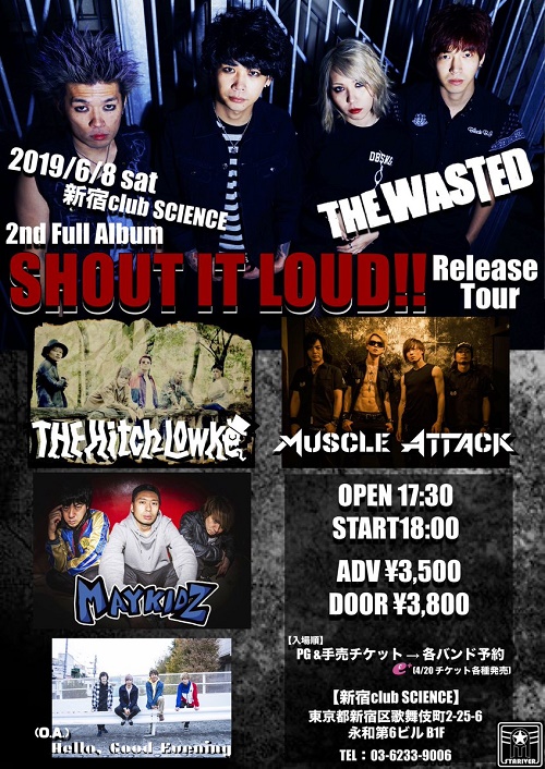 Starting with MUSCLE ATTACK 1) MUSCLE ATTACK ![]() THE WASTED SHOUT IT LOUD!! Release Tour Venue : Tokyo's Shinjuku club SCIENCE Doors open : 5.30pm / Concert starts : 6pm ■ THE WASTED ■ MUSCLE ATTACK ■ THE Hitch Lowke Special guest -> ■ MAYKIDZ Hello,Good Evening will be the opening act for the concert http://shinpei-muscleattack.net/live/live_040.html http://club-science.com/detail/2019/06/08/#1738 2) AKIHIDE 10th solo tour AKIHIDE Premium Night Show 2019 -Gekko no Ryodan- kicks off today at Billboard Live OSAKA For today's performance schedule 1st session - Doors open : 15:30 / Concert starts : 16:30 2nd session - Doors open : 18:30 / Concert starts : 19:30 http://akihide.com/special/gekko_ryodan/index.html http://www.billboard-live.com/pg/sho...t=11449&shop=2
