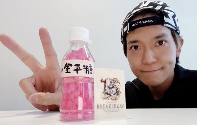 SHINPEI promoting the BREAKERZ XV -Crystal- Strawberry no Konpeito (Crystal Ball) candies