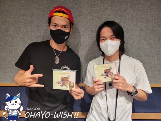 Due to DAIGO having COVID-19 currently , for this morning's OHAYO-WISH!! radio show broadcast , both AKIHIDE + SHINPEI stood in as co-hosts in place of DAIGO :