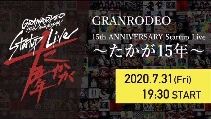 Due to this , Lantis has decided to make available GRANRODEO 15th ANNIVERSARY Startup Live ~たかが15年~ on YouTube , until 12th Aug https://twitter.com/GR_staff/status/1289194337159413760 https://www.youtube.com/watch?v=aP_HSmB2b3A