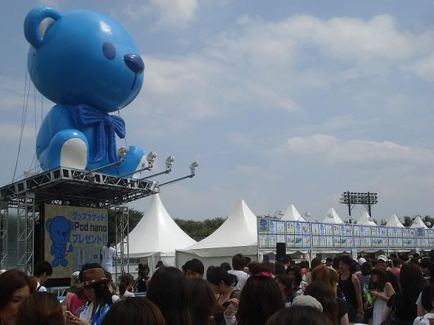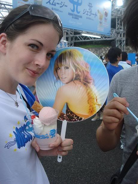 Just got back home from a-nation this day! I must say! This was a really great day! I had so much fun! BoA was stunning as always, makin' all those dance steps amazingly. Koda Kumi actually supriced me and was much better then I ever thought. (Never seen her live before). And I got soooo happy when she played Ningyo Hime. It was awesome! TRF was great for the audience making us dance and sing along all the time with their catchy songs. Tohoshinki isnt my cup of tea really but I laughted the whole time cuz their fans are MAD! Crazy I tell you! I thought all of them would faint like 50 times. Lol. I actually think that Tohoshinki had most fans in the arena, there where these green dots (green is Toho's theme on their goods this yeah) like EVERYWHERE! The scene was really colourful and had 5 screens in total. 2 big for the cameras and 3 long but thin screens that was in the upper frame. Those 3 othen hade diffrent themes for diffrent songs. Also a funny thing that I remember. Sometimes in the pauses they filmed the audience and one time there was this guy who first got so supriced that he was showed on the big screen that he jumped in his seat once. Then he started to twich in his whole body and suddenly he's head fell back and he played dead. It was really funny for a change since the others just did the cheering and peace with their fingers. Also in the pauces the Weider ailien appeared on the stage doing this little silly dance. The there was this secret artist. It was SOOO great! But I'm so sorry, I ALWAYS forget the name of these guys but its three men, dressed as american (kind of) women singing these really catchy songs. They are all over japan right now and TV-shows and such. Anyway, when they was announced everyone SCREAMED of happiness! You all should have seen it. It was great! ^^ Anyway... I shall not bore you anymore... Let's go to Ayu. She was stunning! She (as what I think) sang all the songs and it sounded really really well! Rule and A Song for XX was simply perfection. And yes Sunset for that matter to! Befor the real start her intro video was the "Ayu a a a Ayu, Ayu ready" song and with her A movin around with the a-nation bear and the weider ailien. Also two A's was forming Enrique and Yo-chan playing on a stage and their guitarr/base fliped over several times with writings on them and such. Then the notes sad that it was time. It got dark. First there was a japanese ninja themed start with the male dancers doing these ninja moves that they does in the PV. Then suddenly She appeared! She started of with Rule, doing that acapella thingy that we have seen from the tour clips. The 3 upper screens was showing all diffrent thing depending where in the song you where but there was powerful movement in the cours and falling sakura leaves in the brigde for example. She was on a upper stage and during the song the upper stage went down and she entered the catwalk. She did the "Rule lift" backwards, like flying from the catwalk back to the big stage with her back facing the direction she went to. After Rule they did a pretty good job to make it fit with A Song for XX so the song started really rockish. She sang this song just like last year, but withour the heavy rain. After this you saw the dansers in blue-white light costumes (kind of the ones they had on the sunset TV performance for the girls) that was doing this light and airy dance. It was soooo beautiful! Then BLUE BIRD started. Ayu had her blur dress and sang the song really well and she just stod there but the energy inte the audience was really amazing! After BLUE BIRD Ayu spoke some few words, introducing the new song "Sunset" and then it started to play. Like said before, she sang it perfectly! It was so great. Made me really teary-eyed! After the song the light went dark and then they came back on the seccond later she had her white dress. They took the blue one of very quickly! Then she sang TO BE, here she was a bit strained in the voice in the end of the chourses and kind of yelled but it didnt sound to bad actually. Just a bit out of breath. ^^ Otherice it was a pretty beautiful performance. Here did also Shu-ya dance around Ayu and both of them where reaching to each other but they didnt get to like always... In the end of the song Shu-ya found Ayu and stod by her back with his arms lighty around her but then she sank down in the floor, out from his arms. Then he did this sad grin danced some few sad steps and then danced away. After this it was encore time and Ayu came out from the side in a very cute boat! ^^ She, Shy-ya and one more (I didnt catch but I thought it was Zin) stood in the front of the boat the the other dancers where below the top and a bit back from Ayu's spot. They sang Boys & Girls and she didnt shot but she actually sang thank god heavens. In this section all of the fans (including me) where runing from our spots to the sides so we could se her from close. It was amazing I tell you! ^^ She was so happy! After B&G you could here the intro for Sunrise and Ayu got this secretly mona-lisa smile on her face and started to tell the audience to take up their towels and then she took up a green Tohoshinki towel by herself and she started to laught. The Ayu part of the audience laughted with her and screamed about how cute she was. The Tohoshinki part of the audience made these girly screams and took up their towels right away! Then she sang Sunrise (really good) and the energy on the audience was amazing! Everyone did the towel dance! It was really the best time of all!!! After Sunrise it was time for July 1:st. It was just as epic as I had imagined! In the middle she introduced the band as always and then herself and in the last chours confetti was shot all over the arena! So pretty! Then she thankes the audience just like she use to do and just when she said "arigatou gozaimashita" fireworks was shot on the other side of the arena then where the scene is placed. There where ALOT of fireworks. Proba